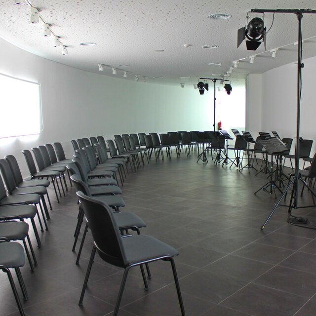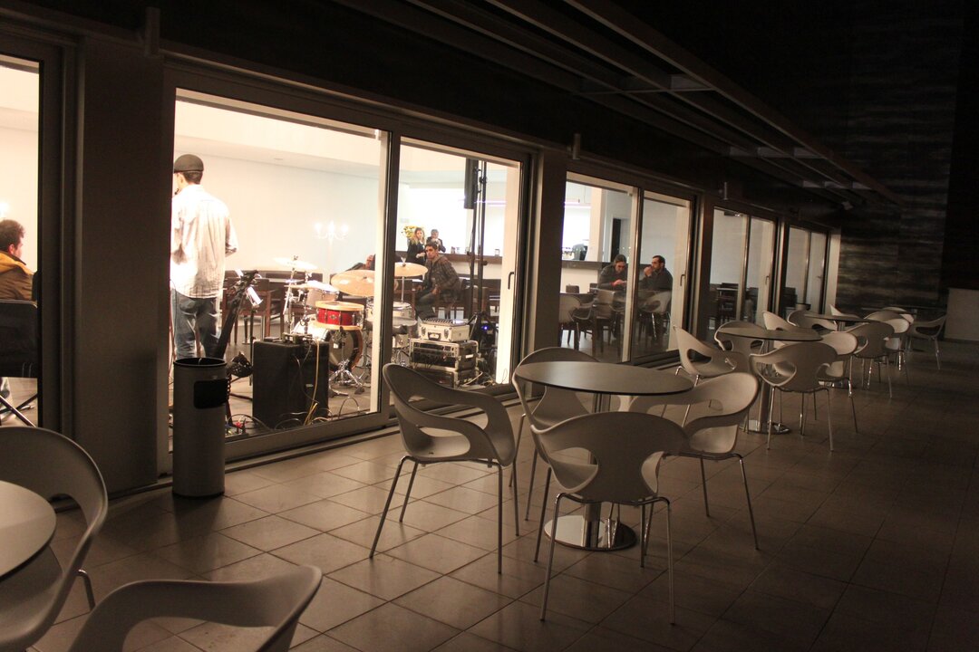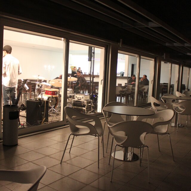 Espaços QA Espaços Quartel das Artes Área de Exposições Auditório Cafetaria QA Cafetaria QA Cafetaria QA Camarins Esplanada Cafetaria (dia) Esplanada Cafetaria (noite) Foyer Palco Auditório QA Palco com fosso de orquestra Voltar