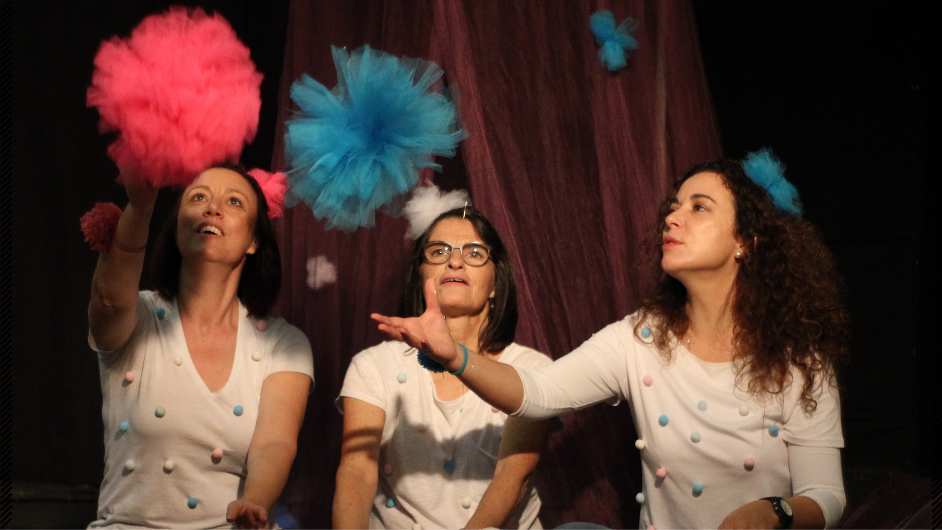 “POMPOM, é uma sessão mágica e surpreendente, inseridas no projeto “Bebé MUSA”, que transforma pompons em bolas gigantes! Elas rodam para um lado, e para o outro… e de repente…saltam sem parar e despertam gargalhadas genuínas e sorrisos muito felizes. Mas…as bolas gigantes transformam-se em imensas bolinhas coloridas e sorridentes! E com a Ana, a Marisa e a Sandra a dinamizar a sessão, muitas outras surpresas irão surgir…” A voz, o piano, a flauta transversal e a guitarra são os instrumentos que serão ouvidos pelas 3 professoras que orientam a sessão, e como complemento à música, o espaço estará decorado de acordo com o tema, proporcionando aos intervenientes um ambiente encantador e acolhedor, onde a música, a cor, o movimento e a descoberta proporcionam aos pais momentos de grande prazer com o seu bebé/criança!